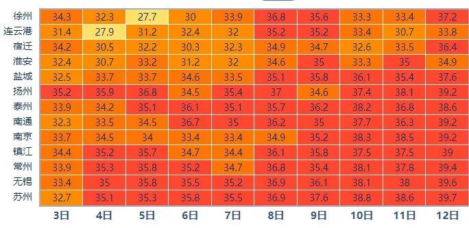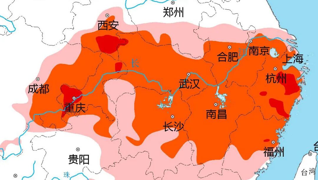 在包邮区和火锅区之间,南京、合肥、武汉、长沙、南昌、福州均报出连续7天高温,本周高温将全勤。长江往北的江淮、黄淮地区也受到高温影响。