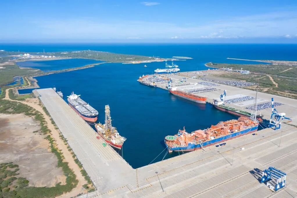 当然,汉班托塔港目前规模还小,拥有一个港池、8个10万吨级泊位。这里本来是一个瀉湖,后来经过清理、疏通、建设,就成了港口。