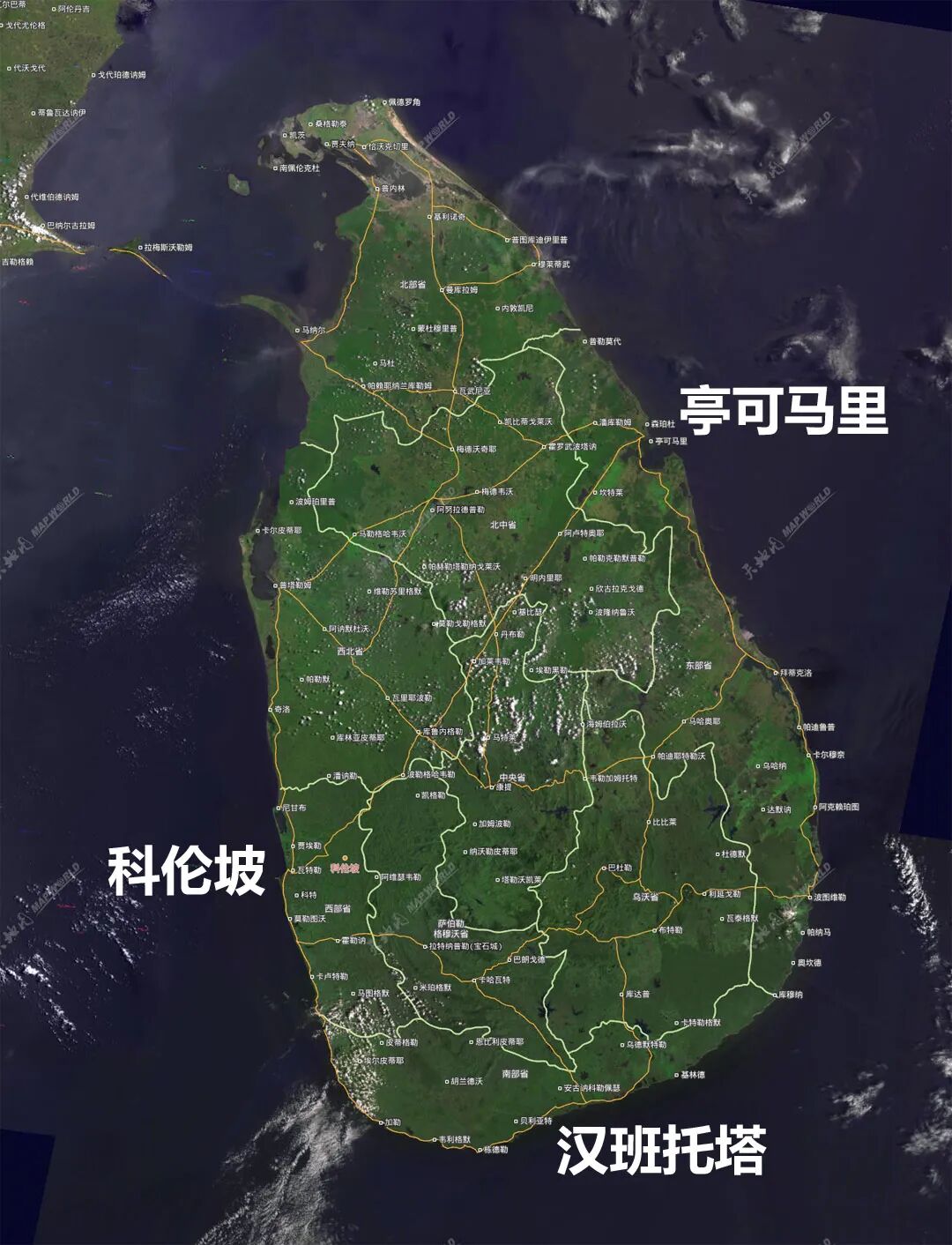 在斯里兰卡东北部,还有一个更大的、无需疏浚的超级天然良港——亭可马里(Trincomalee),这个港湾面积达10平方公里,是世界上面积最大、风景最美的天然港之一。