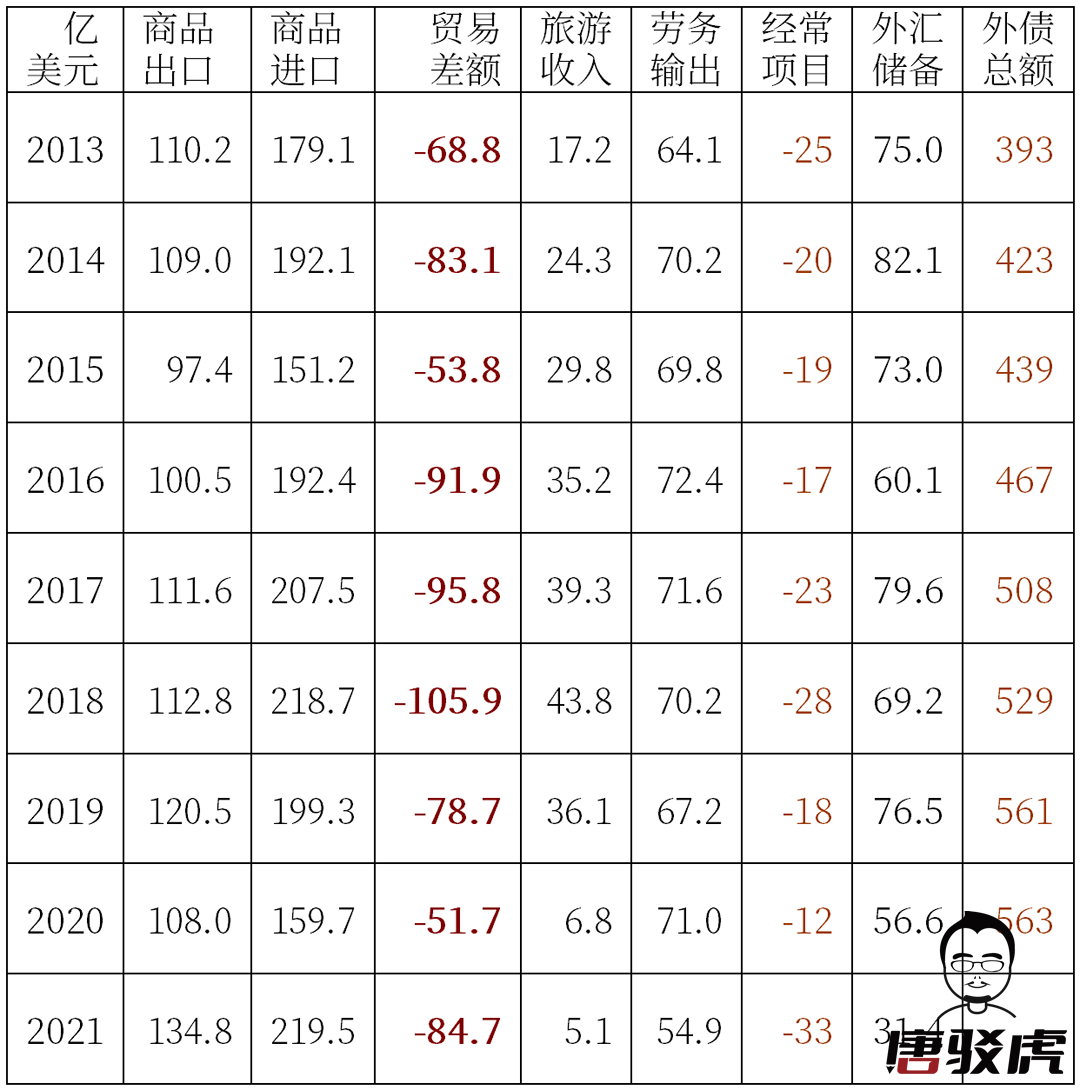 斯里兰卡这些年的贸易逆差常年保持在7.2%以上,财政赤字保持在5.3%以上。贸易、财政双赤字,这肯定是不可持续的。