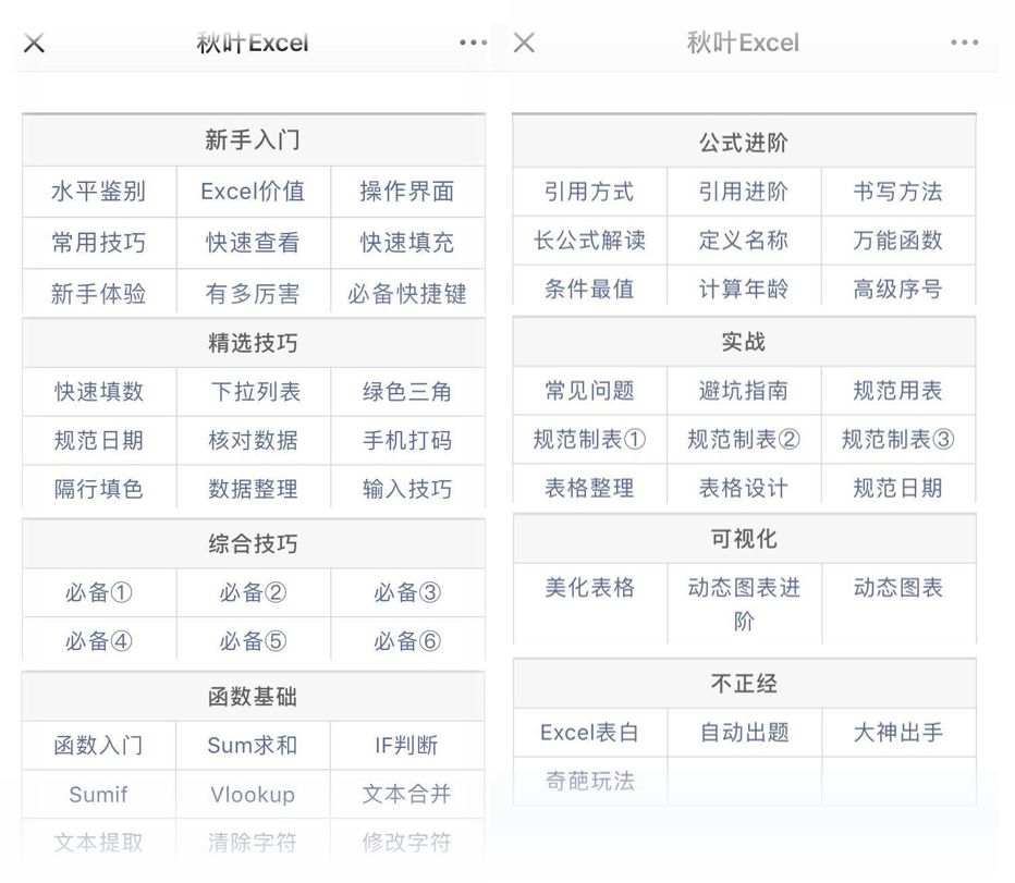 在秋叶 Excel 中,我们特意制作了「精华文章分类宝典」供您查阅。宝典分类里,有近百篇详尽的教学文章,随时随地为你解决问题。