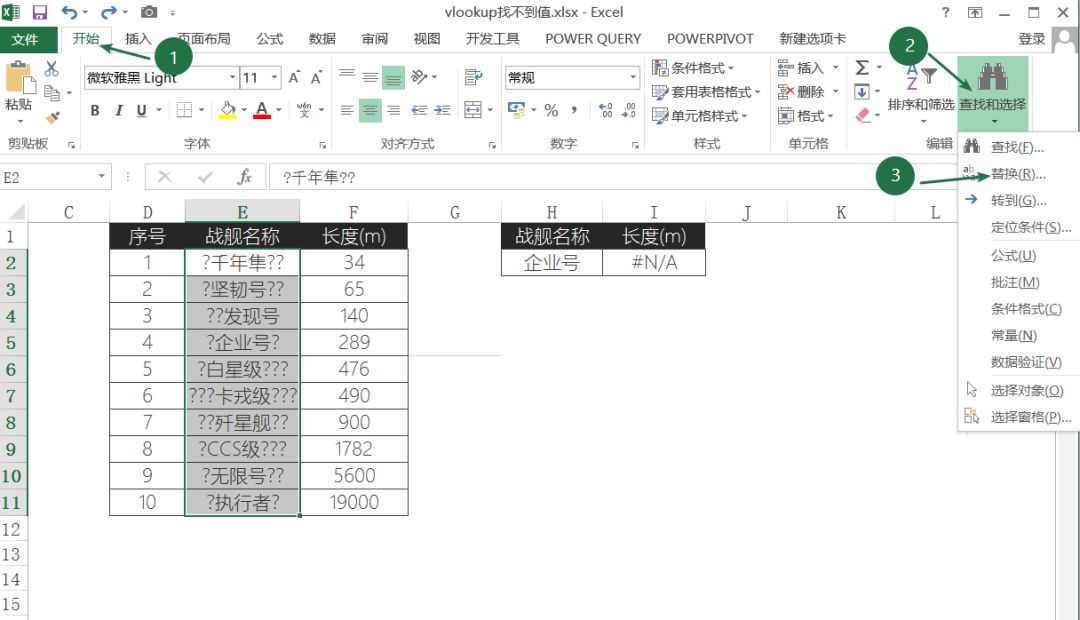 ❹ 在 Excel 中进行查找替换,将?替换为空白;
