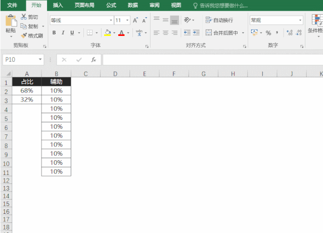 ❶ 还是使用 10 个 10% 的数值作为辅助数据。