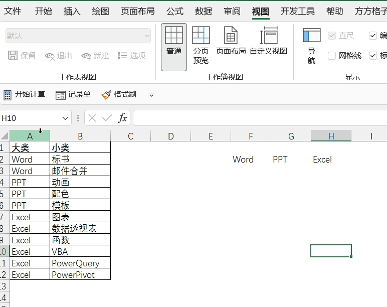 ② 筛选条件:$A$2:$A$12=F$2 大类是否等于「Word」。