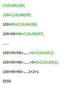 自定义函数「CUSUM」不断循环调用自己,直到碰到条件 n=1,才停止调用。从而达到了数值累加的目的: