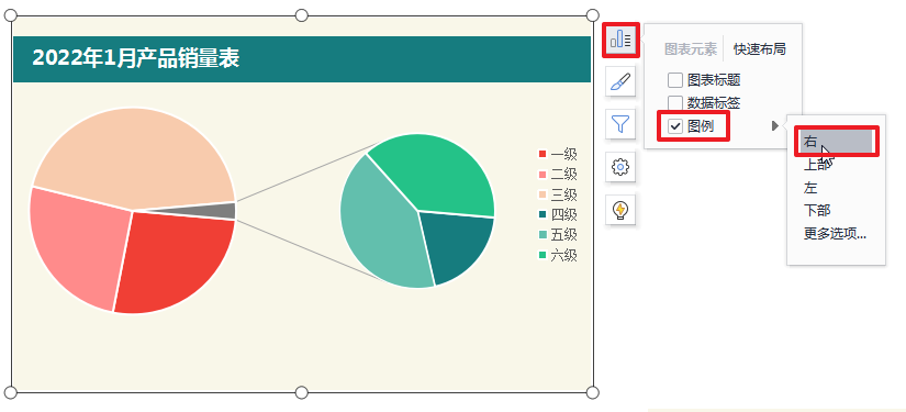 因此在饼图里面,四至六级产品的占比太小,以至于完全看不清楚,他想知道有没有比较合适的图可以解决这类问题。