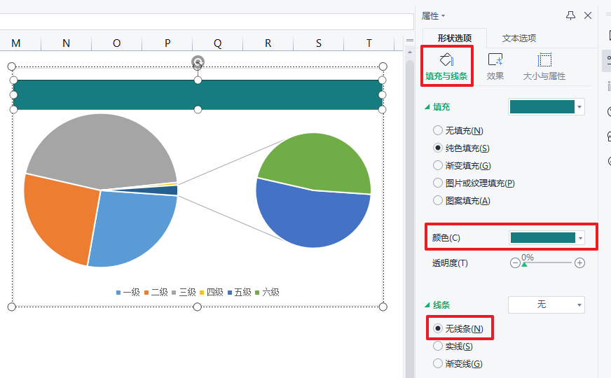 ❶ 删除图表标题,绘制一个矩形,双击矩形设置属性,将颜色设置为绿色(RGB:22,124,127),线条设置为无线条。