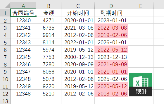我们设置好条件格式后,Excel 会将数据区域的日期和当前系统的日期进行比对,标记出小于当前日期的单元格。