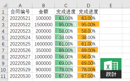 怎样快速标记数据,体现合同的完成进度呢?