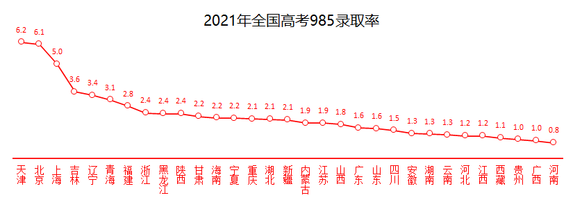 而我们亲爱的河南,再次垫底,仅为 0.8%,河南 985 学生是真正百里挑一的佼佼者!