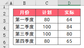 现在给你一份数据,包含了某公司各季度的产品销售计划和实际,请用柱形图直观的表现出来。