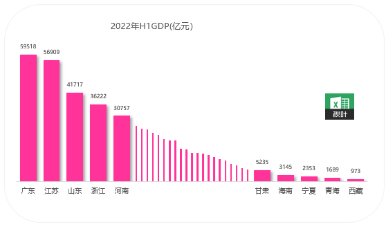 这样既能非常直观地看前 5 名和后 5 名省份的信息,又能大致了解其它省份的趋势。