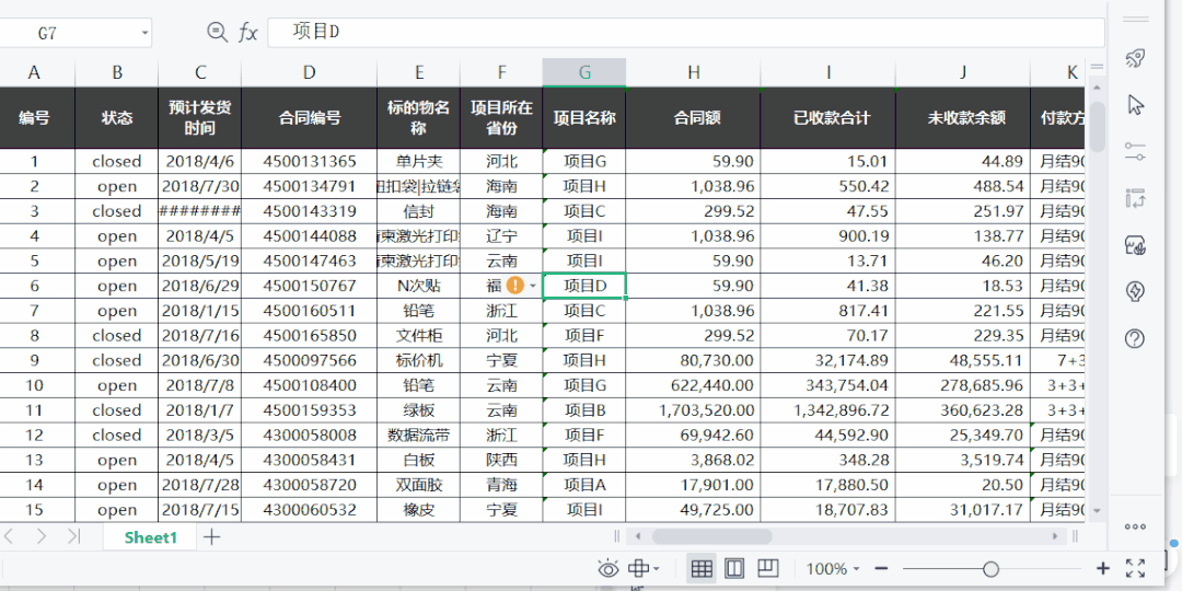 然而,意想不到的是,贴心的 WPS 自带聚光灯功能!!!在【视图】选项卡下,单击【阅读模式】,这里我们可以选择聚光灯的颜色,如果要取消聚光灯的功能,重新单击一下【阅读模式】就可以了。我们平常还会使用大显示屏浏览数据,但是由于显示屏变大,Excel 界面并没有跟着变大,造成了视觉上的不舒服。如下图,单元格字号我们可以通过直接缩放,或者放大字体就可以浏览,但是工作表标签字号无法变大,所以看起来有点不协调。Excel 并不存在将工作表标签字号放大的功能,一般曲线做法是通过设置显示屏外观来达到这个目的的,不过一旦设置,其他软件也会受到影响,不太推荐。惊喜的是,WPS 居然自带让工作表名称放大的功能!只需选中【表格标签】-单击鼠标右键-选择【字号】-放大比例即可实现!表格中,老板要求放置各种产品图片,但是当我们要查看图片内容时,由于图片太小,看的时候只能把表格整体放大,然后再重新缩小回去,略显麻烦。在 Excel 中,我们一般会选择把图片放在批注中,但也不是特别方便。单击图片,选择图片旁边的【图片预览】功能,我们就可以对图片进行放大查看了。如果我们想要图片跟随着单元格的大小发生变化,可以将图片嵌入到单元格中。单击图片右键-选择【切换为嵌入单元格图片】,此时图片就可以跟随着单元格的大小发生变化了。这时想要查看图片,只需单击单元格,选择图片旁边的【图片预览】功能(单元格旁边的放大镜图标),即可进行查看图片。PS:最近 Office365 新出现了 image 函数,该函数可以查看网页上的图片。单击单元格后,还可以预览放大后的图片内容,并且能够自定义图片大小。有兴趣的小伙伴也可以自己去试一下(˵¯͒〰¯͒˵)。本文讲解的是相比于 Excel,WPS 在浏览数据中,四个比较好用的功能。- Excel 中实现聚光灯功能,需要使用条件格式+工作表事件,在 WPS 直接就有阅读模式,非常方便!