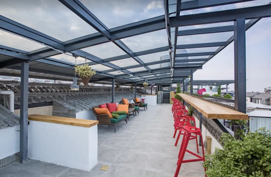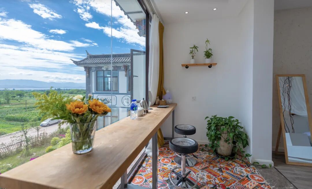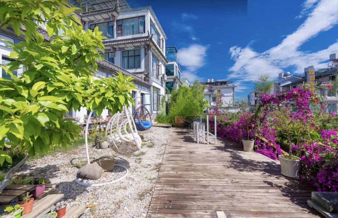 进入三楼,就是一个异常开阔,面积有100来平的天台,在这里可以远眺苍洱海,视野毫无阻挡。