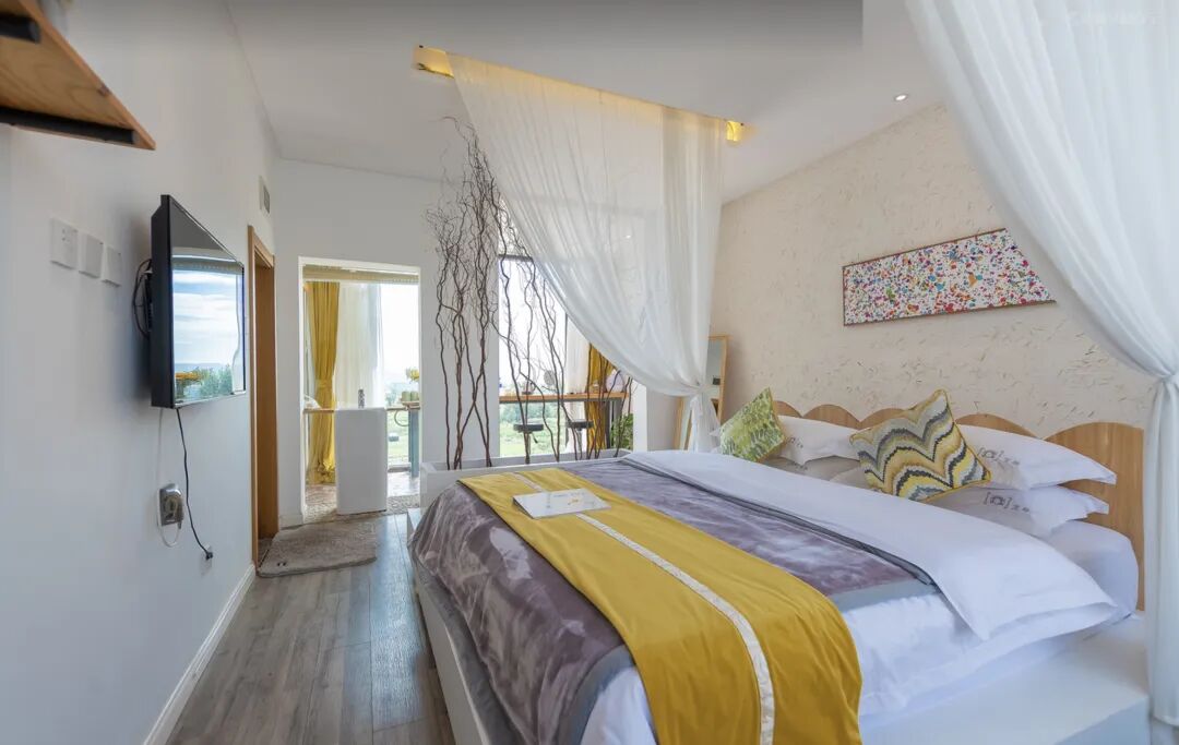 除了这些公共空间,706大理青年空间有16个房间可以对外出租,每个房间都配有独卫,还有的房间还配置私人图书馆/客厅,有的房间是全景透光海景房。