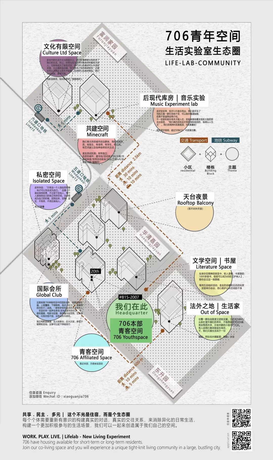 因为706生活实验室还不仅仅是居住产品,它不仅有关“生活”,更是有关“生活实验”,所以,我们应该从社群和共同体的角度来思考,这个既涉及到单个某个生活实验室的自治,也涉及到跨生活实验室的共治,也包括在整个生活实验室的社群基础上的,人的自我成长和自我价值的实现。