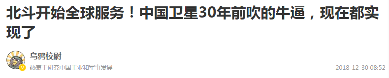 而在对内传播上,工业党媒体的思路要清晰的多,那就是高举“工业党”的大旗。试看任意几篇文章的标题:《北斗开始全球服务!中国卫星30年前吹的牛逼,现在都实现了》、《从工业化到现代化,为什么当今世界的新动能非中国莫属?》。