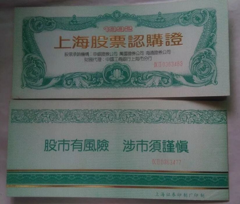 1992年,上海推出了新的股票发行办法:股票认购证,凭身份证购买,每本30元。能否买到股票,要看认购证是否中签,中签了才能买新股。这本是为了平抑市场情绪的措施,却引起了更大的炒作。新股还没上市,股票认购证却很快价格炒上了天。