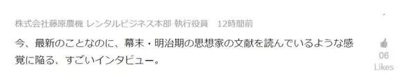 一位日本网友在读了任正非的采访之后,写了如下的感慨:现在,明明是最新的报告,却有种在读江户幕府末期与明治维新时期的思想家的文献的感觉。