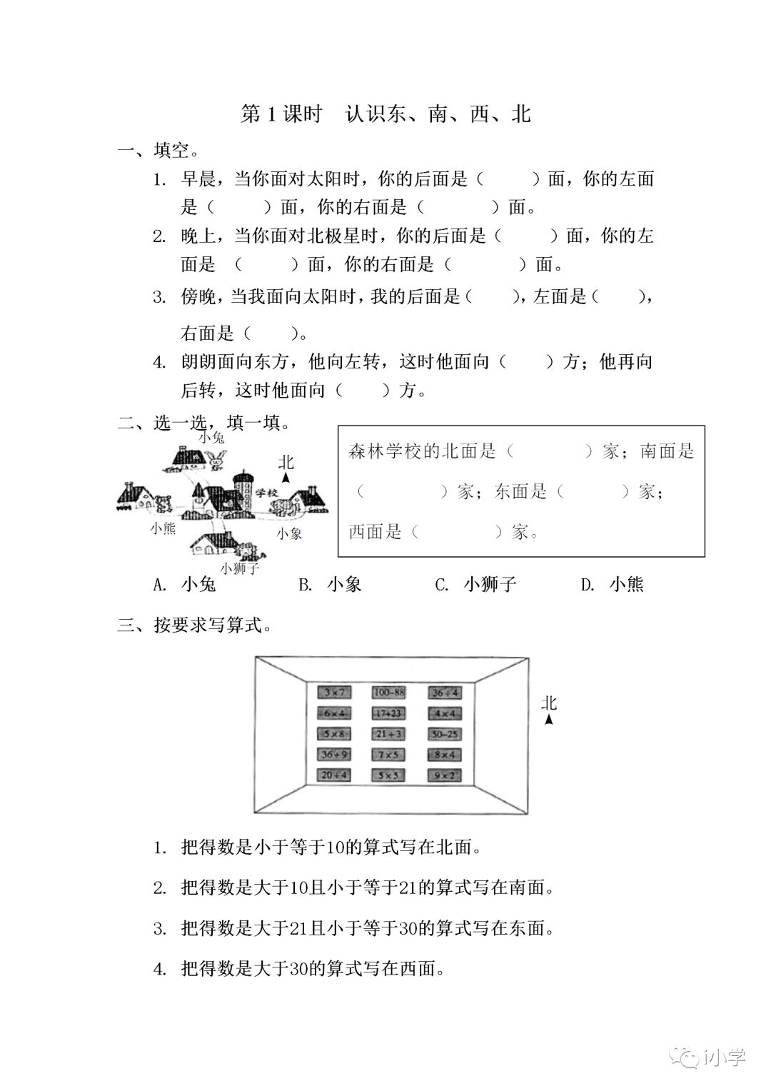 人教版三年级数学(下)1.1《认识东、南、西、北》精讲