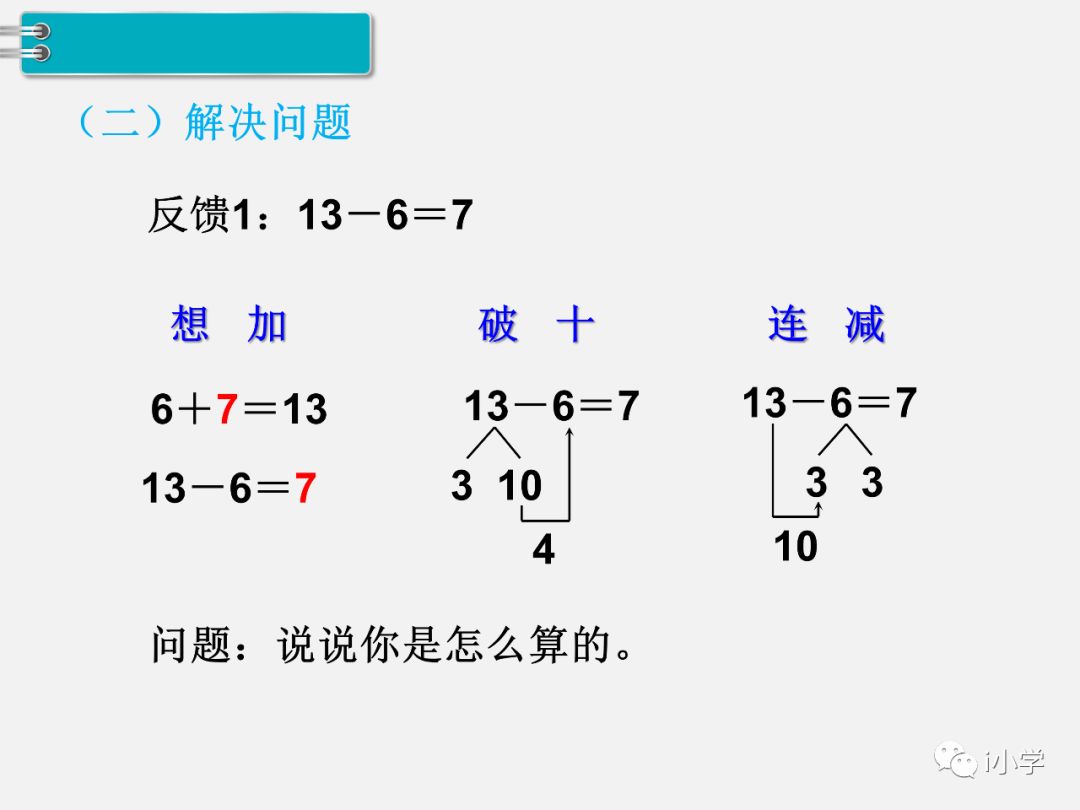 人教版一年级数学(下)2.3《十几减7、6》精讲