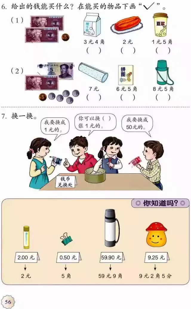 人教版一年级数学(下)5.2《人民币兑换》精讲