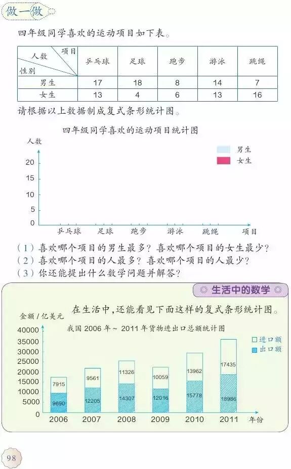 人教版四年级数学(下)8.2《复式条形统计图》精讲