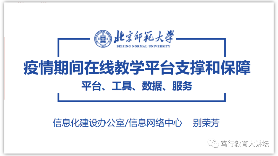 别荣芳从平台、工具、数据、服务等方面介绍了疫情期间在线教学平台对北京师范大学有序开展教学的支撑和保障。她表示,线上线下融合已成为未来教学新常态,它不仅是技术问题,而是理念、机制、环境和教学设计的综合。结合对国外高校教学信息化整体情况的调研,她建议构建融合式教学支撑保障体系、整合融合式教学平台、加强线上线下结合的数据应用、打造融合式教学平台支持核心、建立融合式教学平台支持机制。(↓点击图片下载PPT课件↓)