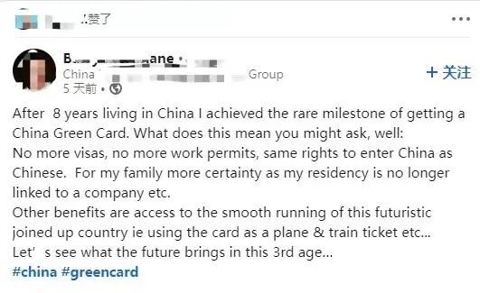 But when you have a green card, you can work freely in China like a Chinese citizen and be protected by Chinese labor laws. Cardholders can not only participate in talent training programs in various cities, apply for talent or expert awards, but also take professional qualification exams.