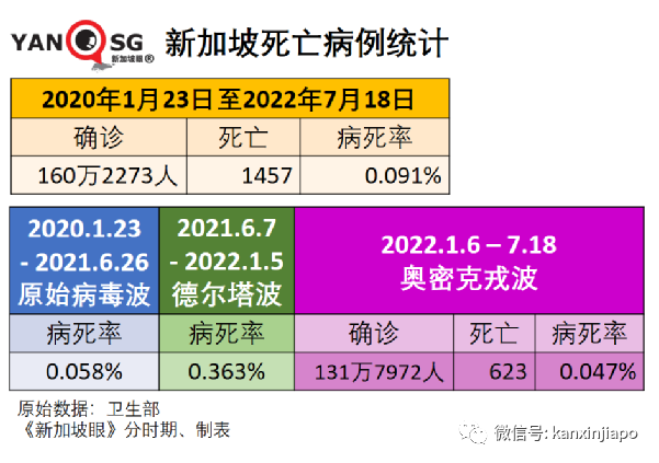 我们曾多次提出,增长率会在1.0上下波动,直至达到群体免疫。所谓“群体免疫”,并非病毒不再传染,而是传染的速度放缓,重症率和死亡率维持在低水平,不会挤兑医疗资源,民众并不惊慌,心态平和,维持正常的生产、生活、学习秩序。卫生部昨晚通报4起新增死亡病例,累计1457起,总体病死率维持在0.091%,前一天同。按病毒株的种类划分,新加坡经历了原始病毒波,去年进入德尔塔波,现在是奥密克戎波。本波疫情病死率维持在0.047%,与前一天同,为流感病死率的一半。上述奥密克戎波只是《新加坡眼》的粗略划分,其中有一些死亡病例是感染德尔塔株,但死亡时间出现在奥密克戎波期间,所以我们仍划入奥密克戎波统计。新加坡原始病毒波感染的绝大多数是宿舍客工,年富力强,病逝2人;德尔塔波和奥密克戎波则主要感染社区,病逝者大多是年长者,年迈体弱。时隔两周,ICU重症病房昨天再现20岁至39岁青年重症病例。ICU重症病房有16人,比前一天增2人;ICU病房占用率为4.6%。按年龄分,七旬或以上年长者有11人(=),六旬年长者有3人(=),40岁至59岁中年人有1人(+1),20岁至39岁青年1人(+1);括号内数字为今昨日比较。按病情分,ICU输氧观察有6人(+2),病危插管有10人(=)。在ICU输氧观察的6人当中,2人未接种/未完成疫苗全程接种,4人已完成疫苗全程接种,其中3人已接种加强针。在病危插管的10人当中,1人未接种/未完成疫苗全程接种,9人已完成疫苗全程接种,并且皆已接种加强针。过去28天,新加坡累计出现21万7863起确诊病例,其中99.7%为无症状/轻症,0.2%曾需要/正需要普通输氧,0.03%曾是/仍是ICU重症,0.02%死亡。在国家疫苗接种计划下,已完成疫苗全程接种人口比例为93%,已接种加强针人口比例为78%。五旬以上人口已开放免费接种第二剂mRNA加强针。昨天的新增确诊病例当中,PCR核酸检测阳性541人(9%),ART抗原检测阳性5686人(91%)。新加坡不做全员核酸检测,而是让民众自行做抗原ART自测。抗原检测虽然灵敏度不如核酸,但是速度快,成本低,而且避开集体检测的风险,在已经爆发疫情的城市特别合适使用。除了新加坡,还有很多国家也是采用这种模式。有些国家既不做全员PCR核酸检测,也不做ART抗原自测,如俄罗斯、朝鲜。中国的香港特区本来也认定ART阳性为确诊,但后来认为“假阳性”比例高,造成确诊数据虚高现象,因此不再以ART阳性为确诊,而必须经过PCR核实才算确诊。《新加坡眼》根据卫生部数据计算,新加坡阳性率为28.09%,换句话说,每10000人当中,有2809人确诊。卫生部多次指出,考虑到不少ART抗原自测阳性没有上报,感染人数实际上肯定更多,总体阳性率肯定更高。有专家判断,总体阳性率可能已经达到七八成。阳性率越高,越接近群体免疫,病毒仍会传播,但速度放缓、重症和死亡下降。当局制定政策考虑的不是感染人数,而是重症和死亡,并在医疗资源无挤兑风险的前提下,尽快尽可能大范围的开放。在普通输氧的78人当中,15人未接种/未完成疫苗全程接种,63人已完成疫苗全程接种,其中57人已接种加强针。普通输氧病人使用的是普通隔离病房和面罩式呼吸机,无创,无须建立人工气道,不插管。在普通型住院病患的716人当中,132人未接种/未完成疫苗全程接种,584人已完成疫苗全程接种,其中522人已接种加强针。德尔塔感染病人0.8%需要输氧,奥密克戎感染病人需要输氧的比例少于0.3%。近期,全球冠病确诊病例飙升,欧美多地、东南亚兴起了新一波感染。在全球多地爆发新一波疫情的影响下,新加坡境外输入病例新增249起,累计5万3657起。