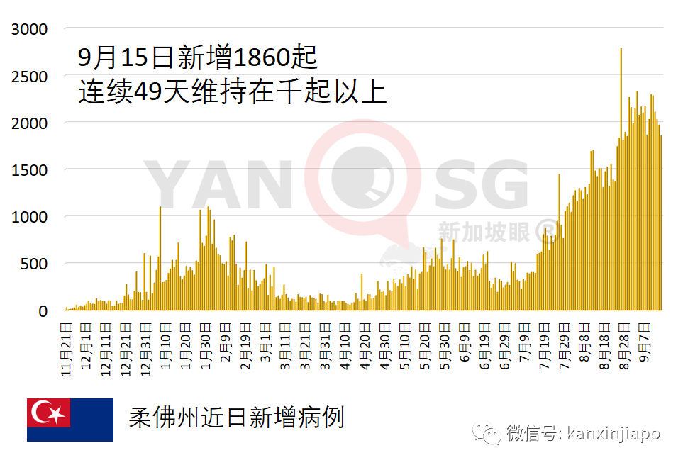 马来西亚今增25个感染群,累计5207个感染群;活跃感染群从1448个降至1424个;已经解除医学观察感染群有3783个。在各州属当中,砂拉越新增4709起确诊病例,是当天新增病例最多的州属;其次为雪兰莪,增2710起;再次为沙巴,增2015起。最靠近新加坡的柔佛新增1860起,已连续49天日增千起以上确诊病例。根据《新加坡眼》统计,柔佛州自去年11月21日以来的疫情走势如下:9月15日,泰国新增1万3798起确诊病例,累计142万零340起,破142万起。在1万3798起病例当中,1万3347起是社区病例,451起是监狱囚犯病例。死亡病例介于22岁至96岁,包括三名缅甸人、两名柬埔寨人、一名英国人。点击下面视频,可以看到更丰富的内容!