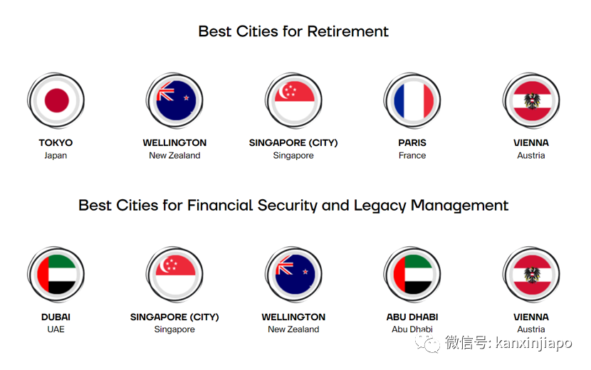 排名前两位的是日本东京和新西兰威灵顿,新加坡位列第三,第四位是法国巴黎,第五位是奥地利维也纳。在全球最佳金融安全和遗产管理城市排名中,新加坡位列第二。
