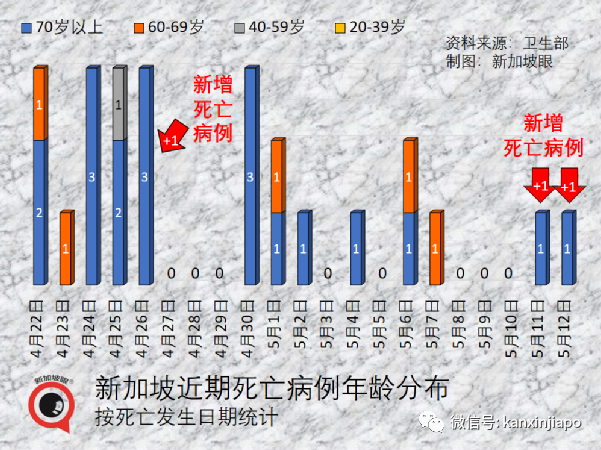 从卫生部发布的数据图表看,这3起新增死亡病例皆为七旬或以上年长者,4月26日有1起,5月11日、12日各有1起。