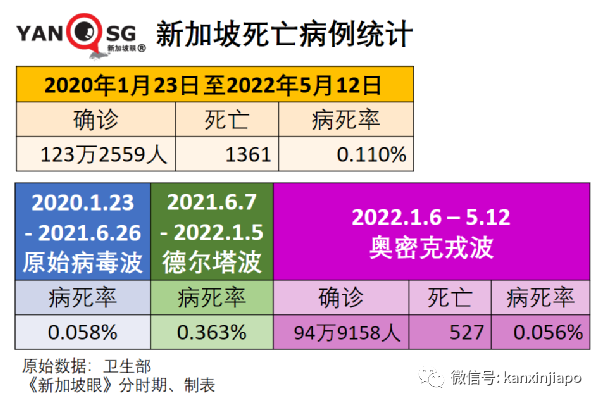 按病毒株的种类划分,新加坡经历了原始病毒波,去年进入德尔塔波,现在是奥密克戎波。《新加坡眼》以1月6日为奥密克戎波的开始,分析此三波的病死率如下: