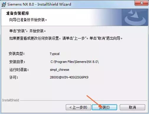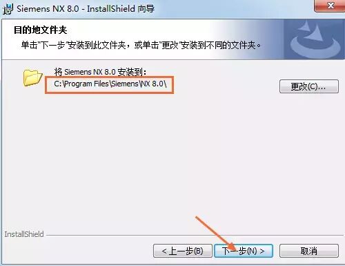 17.选择安装目录,默认安装在C:\Program Files \Siemens\NX 8.0\(建议安装在除C盘以外的磁盘上,可在D盘新建一个文件夹D:\Program Files \Siemens\NX 8.0\),点击下一步