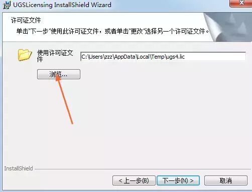10.点击浏览,选择刚才更改计算机名的在破解文件夹下的nx8.lic文件,点击下一步