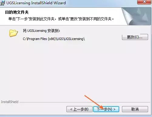 9.选择安装目录,默认安装目录在C:\Program Files (x86)\UGS\UGSLicensing\(建议安装在除C盘以外的磁盘上,可在D盘新建文件夹D:\Program Files (x86)\UGS\UGSLicensing\),点击下一步
