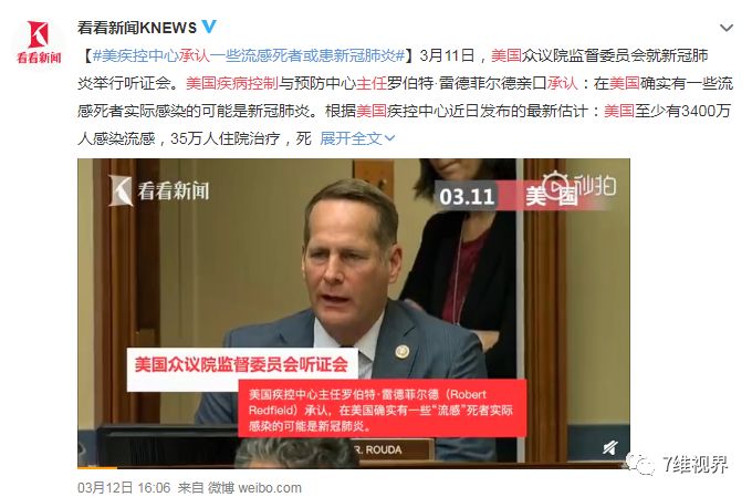 8、美国疾病控制与预防中心主任罗伯特·雷德菲尔德:一些似乎死于流感的美国人在死后的诊断中被检测出新型冠状病毒呈阳性。