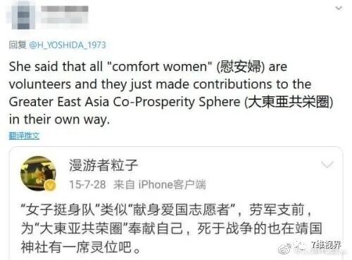 她还在外网上对日军侵华时的“慰安妇”罪行公开美化!