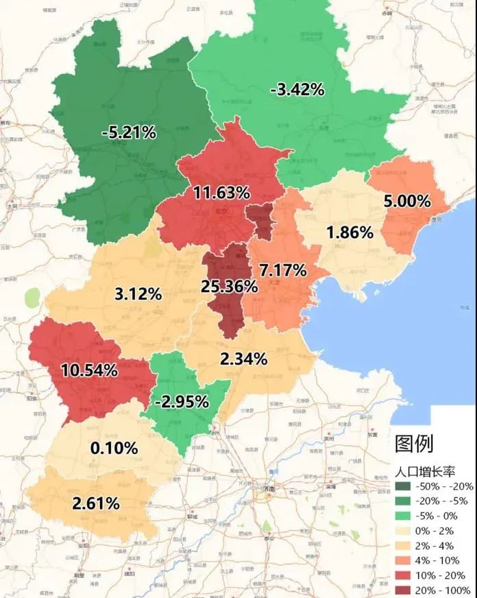 总体来说,中部几省和华北、西北地区差不多,基本是省会和省会附近区域,才有人口流入。