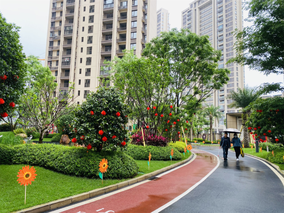 ▲彰泰红优美的小区园林。