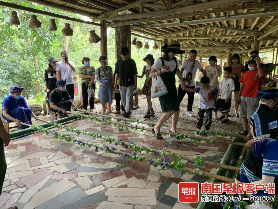 ▲游客正在体验竹竿舞。南国早报记者 练才榕摄