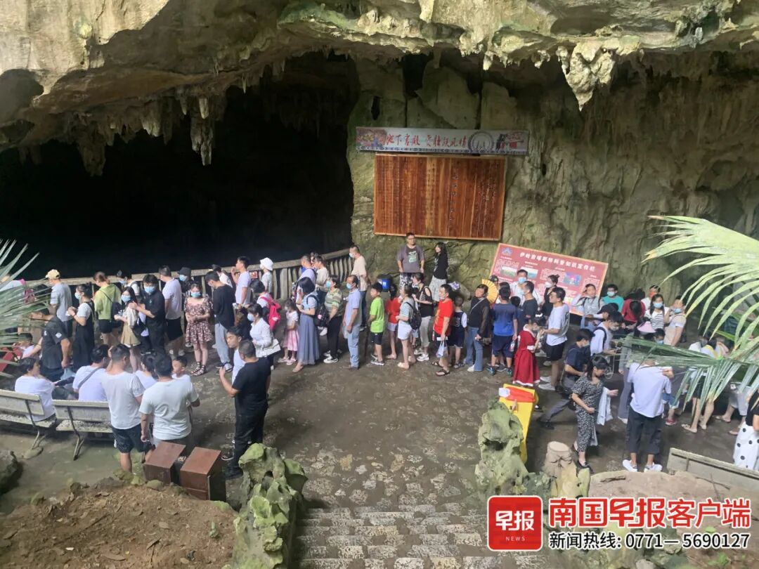 在伊岭岩景区,由很多散客组成的“旅行团”跟着导游的步伐,感受了溶洞魅力。有着四川口音的黄先生表示:“是大自然的鬼斧神工造就了伊岭岩,今天32℃的高温,进来逛一圈真是太凉快了,不愧为避暑胜地。”