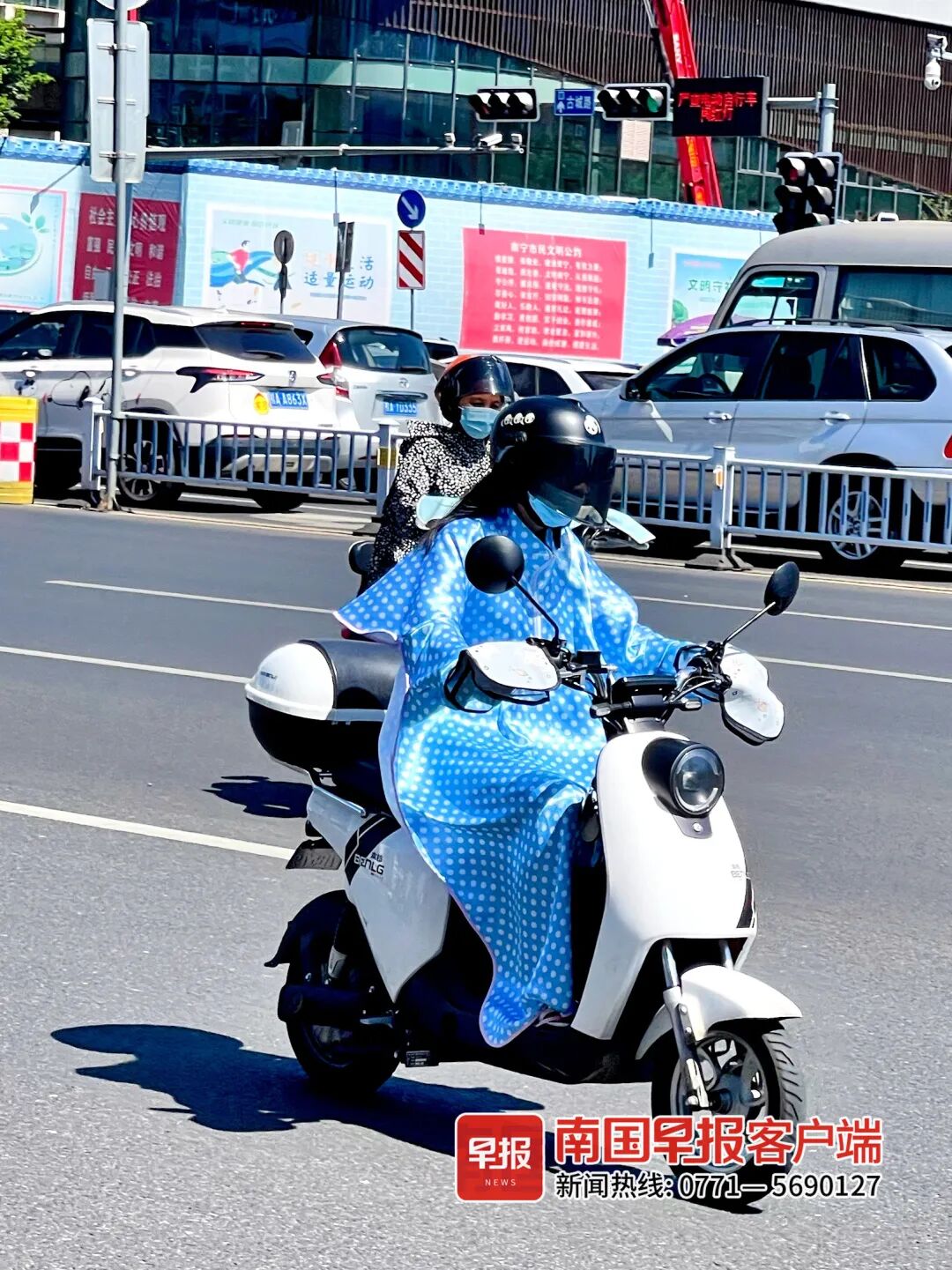 ▲炎炎夏日,市民外出时穿戴各种遮阳防晒用品。