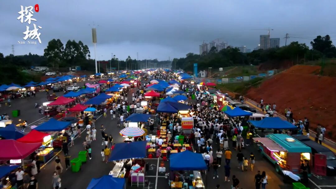 三是五象汽车生活广场夜市,地点在良庆区东风路50号,共设200个摊位。