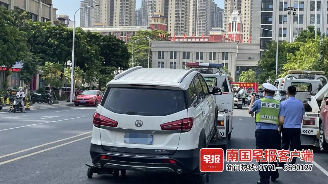 针对市民反映南宁市青秀区林坪路违法停车现象突出的情况,7月28日上午,南宁交警部门组织警力进行整治。半个小时里有4辆小车被拖走,十余辆小车被贴单。【详讯】