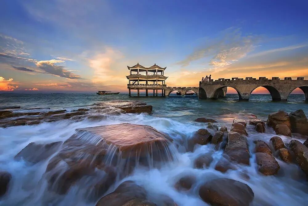 一幅美丽的乡村画卷在海边徐徐展开