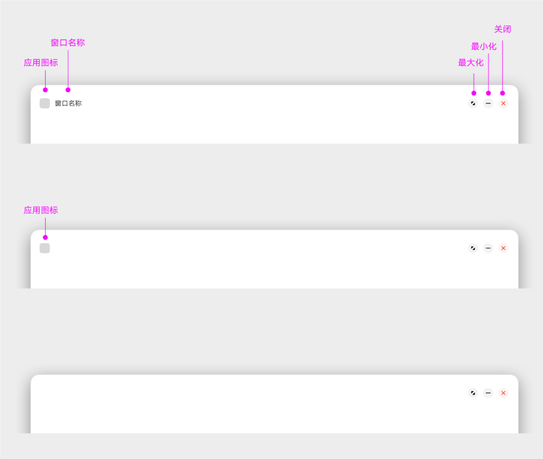 窗口提供默认的标题区背景、应用图标、应用名称以及窗口控制按钮: