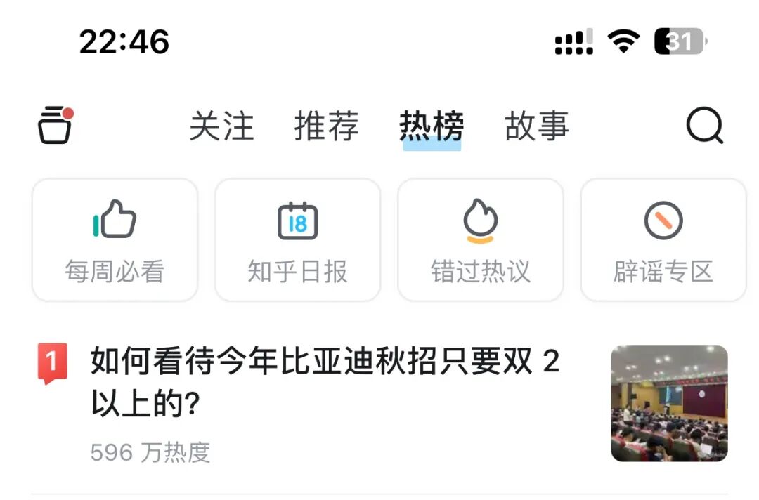 去年比亚迪创造了 24 小时收 12w 份简历的惊人战绩!