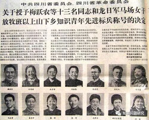 1977年元旦前夕,四川省党政军联合向下乡知青发出的慰问信说,你们满怀豪情奔赴农村、边疆,在农村这一广阔天地里,茁壮成长;你们以“可上九天揽月,可下五洋捉鳖”的英雄气概,在农村三大革命斗争实践中,在农业学大寨、普及大寨县的运动中,做出了积极的贡献。你们坚定不移地走与工农相结合的道路,扎根农村干革命,对几千年来剥削阶级轻视劳动的传统观念是个有力的批判。